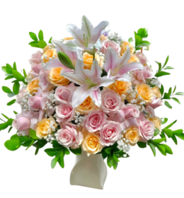 Bunga Vase atau Bunga Meja adalah rangkaian bunga yang diletakkan dalam vas dekoratif, dirancang untuk menambah keindahan dan suasana di meja atau ruang kecil. Dengan berbagai jenis bunga segar yang disusun secara estetis dalam vas yang elegan, bunga vase memberikan sentuhan segar dan berkelas pada dekorasi rumah atau kantor. Cocok untuk acara khusus, perayaan, atau sebagai hadiah, bunga vase menawarkan keindahan yang sederhana namun memikat, memperkaya ruang dengan warna dan aroma alami.