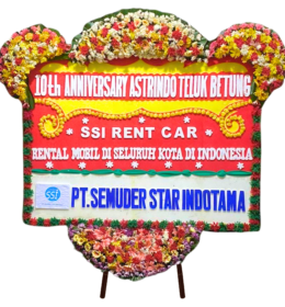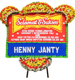- Penataan: Bunga disusun di atas papan dengan desain yang tertata rapi dilengkapi tulisan ucapan.