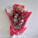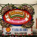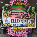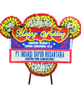 - Penataan: Bunga disusun di atas papan dengan desain yang tertata rapi dilengkapi tulisan ucapan.