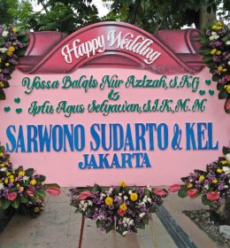 Bunga Papan adalah rangkaian bunga yang dipasang di atas papan besar, dirancang khusus untuk menampilkan pesan ucapan atau pengumuman. Dengan berbagai jenis bunga segar yang diletakkan di atas papan yang dilapisi kain atau material dekoratif, bunga papan memberikan sentuhan elegan dan profesional pada acara-acara penting. Ideal untuk pernikahan, acara bisnis, atau ucapan belasungkawa, bunga papan menciptakan kesan yang mendalam dan memukau dengan desain yang terstruktur dan pesan yang jelas.