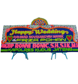 Bunga Papan adalah rangkaian bunga yang dipasang di atas papan besar, dirancang khusus untuk menampilkan pesan ucapan atau pengumuman. Dengan berbagai jenis bunga segar yang diletakkan di atas papan yang dilapisi kain atau material dekoratif, bunga papan memberikan sentuhan elegan dan profesional pada acara-acara penting. Ideal untuk pernikahan, acara bisnis, atau ucapan belasungkawa, bunga papan menciptakan kesan yang mendalam dan memukau dengan desain yang terstruktur dan pesan yang jelas.